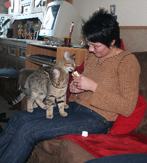 Ik ben via Kattenplaza eigenlijk bekend geraakt met het ras de pixie-bob, daar stond namelijk een mooi verhaal geschreven door Linda Hilberink. Door het verhaal en mede door de foto's van de pixie's raakte ik hoe langer hoe meer verliefd op dit ras. Ik kwam er al snel achter dat Nederland 2 fokkers heeft en na beide gebeld te hebben voor informatie sprong Linda er met haar info helemaal uit. Haar liefde voor haar katten....... Haar passie waarmee ze over haar katten sprak stak voor mij boven alles uit!