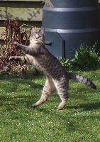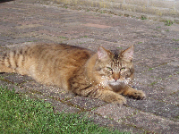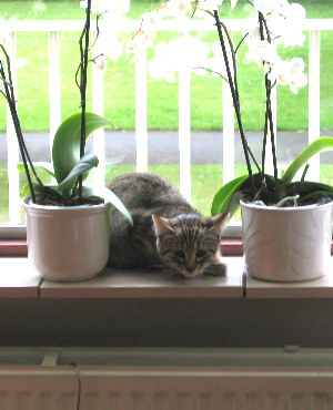De reis is goed gegaan. Hebben er wel een uurtje langer over gedaan wegens file. Ik (Katrien) heb Sam de hele tijd op mijn schoot gehad, want in de kooi wou ze niet. Eigenlijk gaat het al bij al goed met haar. Ze heeft vandaag een beetje uit ons hand gegeten maar gedronken heeft ze nog niet. Deze nacht heeft ze de hele tijd bij me gelegen en was ze zelfs aan het spinnen. Ze is nog wel heel rustig. Soms gaat ze op verkenning, maar dan begint ze te miauwen. Waarschijnlijk op zoek naar mama en broers en zusjes. Ik denk wel dat het morgen al beter zal gaan.